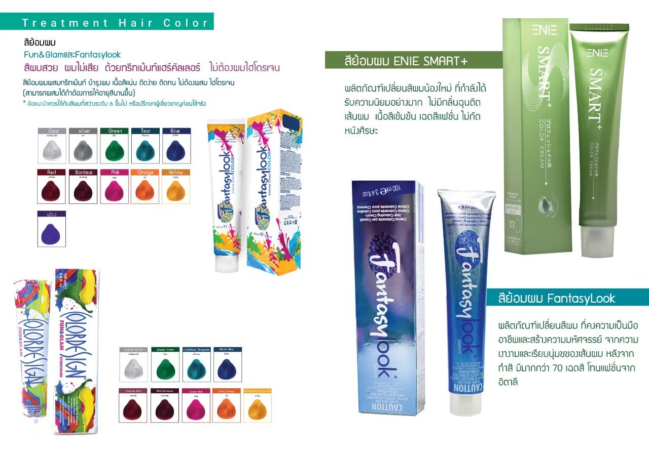 ผลิตภัณฑ์ทำสีผม ระดับมืออาชีพ มีเฉดสีให้เลือกรวมกว่า 200 เฉดสี เป็นผลิตภัณฑ์นำเข้าจาก ประเทศอิตาลี ผู้นำแฟชั่นของโลก และจากประเทศญี่ปุ่น ประเทศที่มีแฟชั่นเคลื่อนไหวอย่างรวดเร็ว